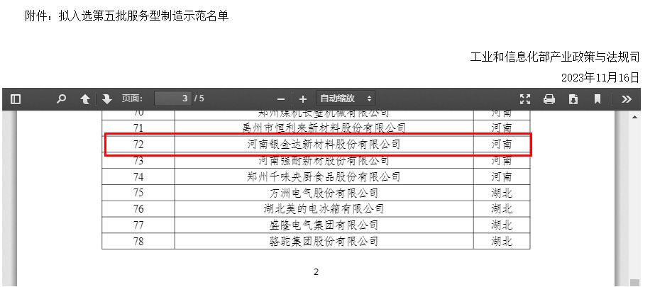 近日,國家工業(yè)和信息化部公示了第五批服務(wù)型制造示范名單,河南銀金達(dá)新材料股份有限公司獲評國家級服務(wù)型制造示范企業(yè)。新材料公司于2022年入選“河南省服務(wù)型制造示范企業(yè)”,此次獲評是對銀金達(dá)“產(chǎn)品+服務(wù)+技術(shù)”綜合解決方案的再次肯定。